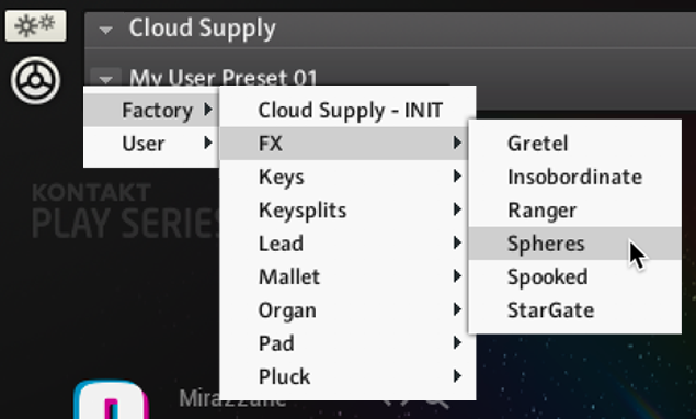 Cloud Supply contains 150 preset. These Snapshots are divided across eight categories: FX, Keys, Keysplits, Lead, Mallet, Organ, Pad, and Pluck.