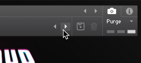 Snapshot Previous/Next (<> icons): Allows you to quickly browse and load Snapshots. Pressing an arrow icon will load the previous or next Snapshot in the selected category. If no Snapshot is active, the first Snapshot on the list will be loaded. For more information, refer to Loading a Snapshot.