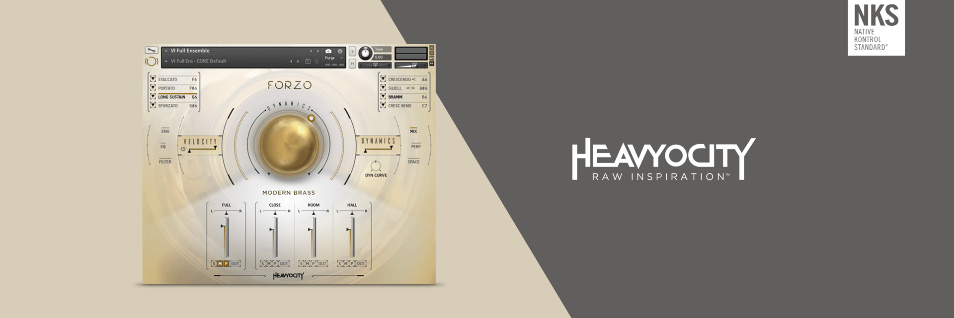 From John Williams to Hans Zimmer, orchestral brass has been a source of force and power in modern scoring. FORZO is designed to supply that same energy. Play with 12 horns, 4 trumpets, 8 trombones (tenor, bass, and contra bass), and 2 tubas – delivering 25 GB of sheer brass power straight into your hands. Creative articulations like cluster bends and flutters will let you maneuver your orchestral scores in whole new directions.