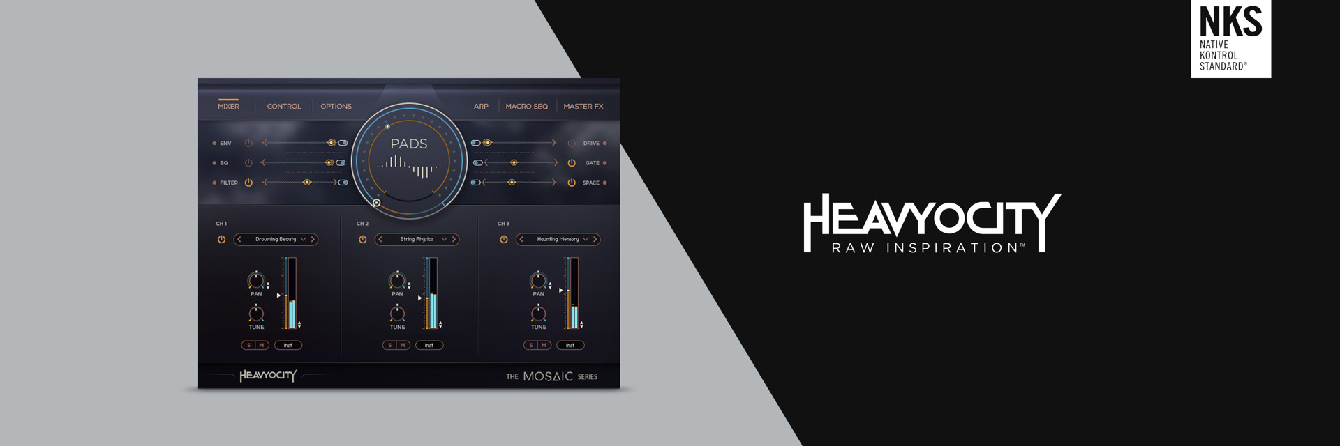 Part of Heavyocity's Mosaic Series, built to encourage ongoing creativity, Mosaic Pads transforms hand-crafted, synthesized sounds into otherworldly textures that create a compelling sonic backdrop to any scene. Get started fast with more than 100 presets, then experiment further with myriad moods in endlessly customizable combinations.