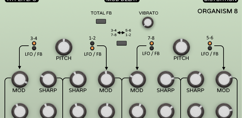 Organism 8 is an attempt to recreate the structure of the Soma Labs Lyra 8 designed by the brilliant Vlad Kreimer. It is an eight-voice synthesizer that excels at less-traditional synth sounds due to its cross-modulation design.