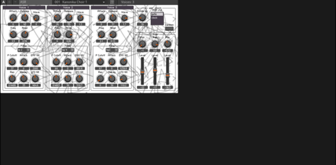 each of the three voices is a complete simple subtractive synth with some control.