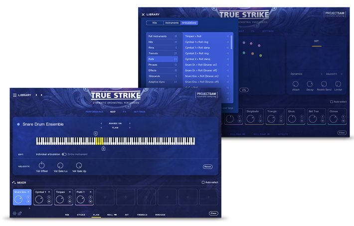 True Strike 1 es la rompedora biblioteca sonora elegida por los compositores de bandas sonoras de cine, televisión y videojuegos cuando necesitan samples de percusión potentes y cinemáticos. Orquesta dramatismo rítmico con golpes potentes, escalas rápidas de infarto y dinámicas atronadoras, con un control total de los instrumentos y la articulación. Un explorador de instrumentos completo, con ubicación espacial visual y herramientas integradas, lo convierte en el recurso definitivo de ProjectSAM para componer con percusión.