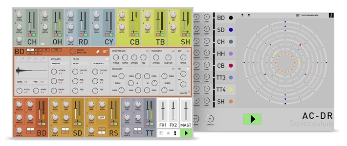 AC-DR es una caja de ritmos antigua que usa técnicas de sampleo del siglo XXI. Cada batería tiene 20 round robins, lo que les confiere un toque expresivo y orgánico. Además, todos los sonidos han sido generados desde la propia batería acústica, incluidos micrófonos, micros de contacto, cámaras de eco y distorsión de transformador.