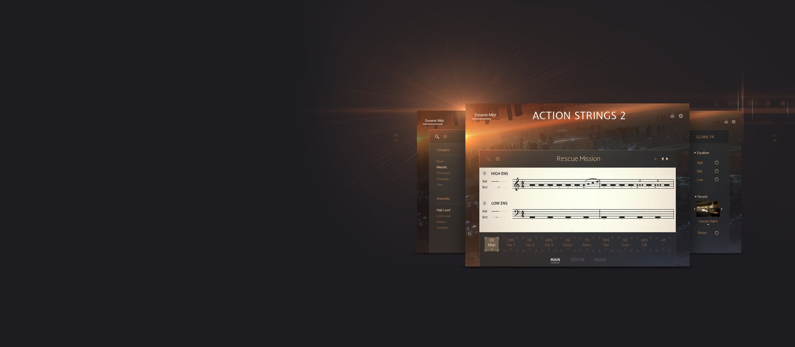 ACTION STRINGS 2 allie la tension à couper le souffle du violon et de l’alto aux timbres profonds et chaleureux du violoncelle et de la contrebasse. Deux ensembles Low et High, qui peuvent être configurés individuellement, te permettent de créer aussi bien des mélodies délicates et émouvantes, que de véritables ondes de choc. La nouvelle technologie de compensation de l’attaque de l’archet offre également une expérience de jeu ultra-réaliste, tandis que le contrôle dynamique des enveloppes te permet de dessiner des balayages créatifs – des subtils diminuendos jusqu’aux crescendos vertigineux.
