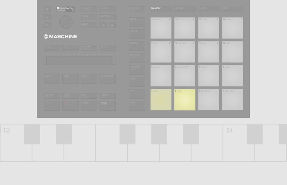 コードは、どんなトラックにでも深みやテクスチャーを加えることができ、MASCHINEでは、それらのコードを簡単に見つけることできます。また1つのパッドでコードを演奏することも可能で、搭載されたアルペジエーターを使えば、様々な組み合わせのノートをリズミカルなシーケンスに変化させ、メロディーラインの作成に最適です。