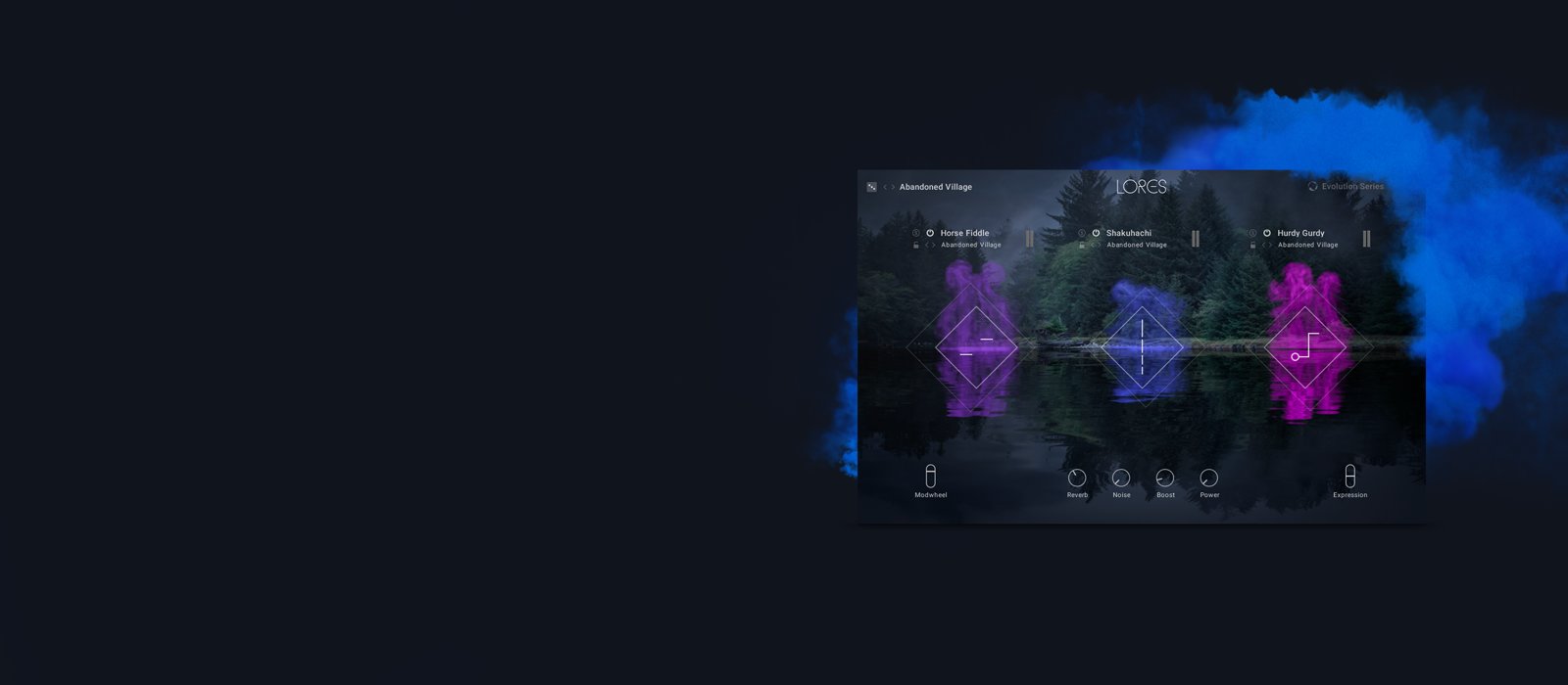 歌を通して物語を語る行為は、人間の経験に共通してみられる現象で、LORESがこの古くから伝わる遺産を親染みやすいタッチで継承している理由はそこにあります。ランダムなスウェル、意外性のあるトレモロ、まばらなハーモニクスなど、有機的なバリエーションを持つミュージシャンの演奏がサンプリングされ、パフォーマンスの段階において自然な動きを生み出してくれます。マルチマイク録音により、楽器を多次元的な煙の中に物理的に配置することができ、力強いリアルさを音楽作品に加えることができます。