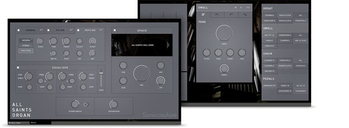 ロンドン・トゥーティングのオールセインツ教会に設置されたオルガンは、Harrison & Harrisonの傑作の1つとして数えられています。製造は1906年、Arthur Harrison氏(史上初の著名サウンドデザイナー)によって調律されたこのオルガンは、繊細で落ち着いた音域と、これまで聞いたことのないような重低音を特徴としています。 オルガンは100年以上前に設置された時のままの状態が保たれており、カップリングを含まない41種類のストップを装備しており、Soniccoutureはこのうち25個のストップを全音域でサンプリングしました。