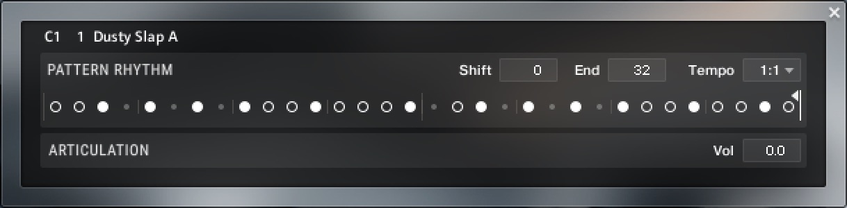 Modify the length, start position, volume, and tempo of any Icon Bass pattern using the Pattern Inspector.