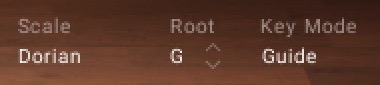 Key Mode: Switches the MIDI note response of the instrument between Scale, Guide, Extended, and White Keys.