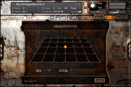 Heavyocity 为 DAMAGE 而录制了传统打击乐以及精良的军鼓与嗵鼓,还有多种多样的木制以及金属制物品发声。 除此以外,他们还设法录制了大量的非常规声源,其中包括爆炸的小汽车、起重机,还有废旧车、垃圾铁桶,以及各种从极高空掉下的大型物件。
