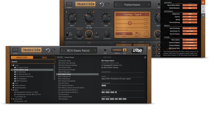 Twangström 是一款仿真自经典箱头的弹簧混响,能为你的作品增添温暖和色彩。利用 twang 参数能够控制弹簧的震荡程度,同时调制矩阵也能帮你控制其深度以及振幅。再加上四种不同的包络模式以及八种不同的 LFO 波形,它不仅可以塑造柔和的混响声,更能够创造出更为激烈的声音效果。